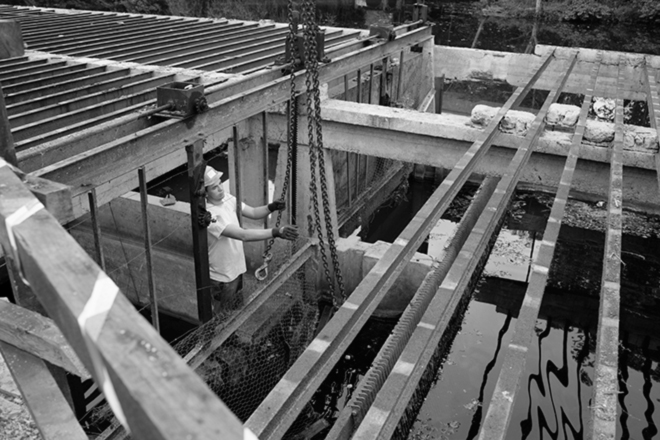 J’ai photographié deux chantiers de l’entreprise Renault Bâtiment Travaux Publics (basée à Loudun). Le souhait du client était à la fois des photographies noir et blanc d’architecture et des portraits en noir et blanc de ses employés.