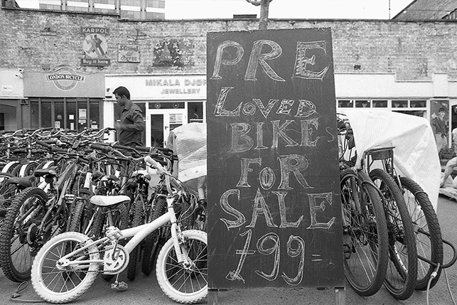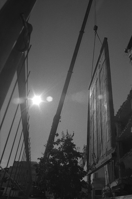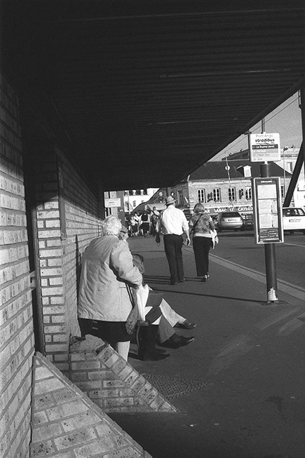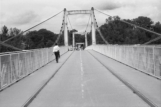La photo tente de rendre perceptible ce tiraillement entre fixité et mouvement. Du noir et blanc résulte, parfois, une déréalisation des espaces familiers. »